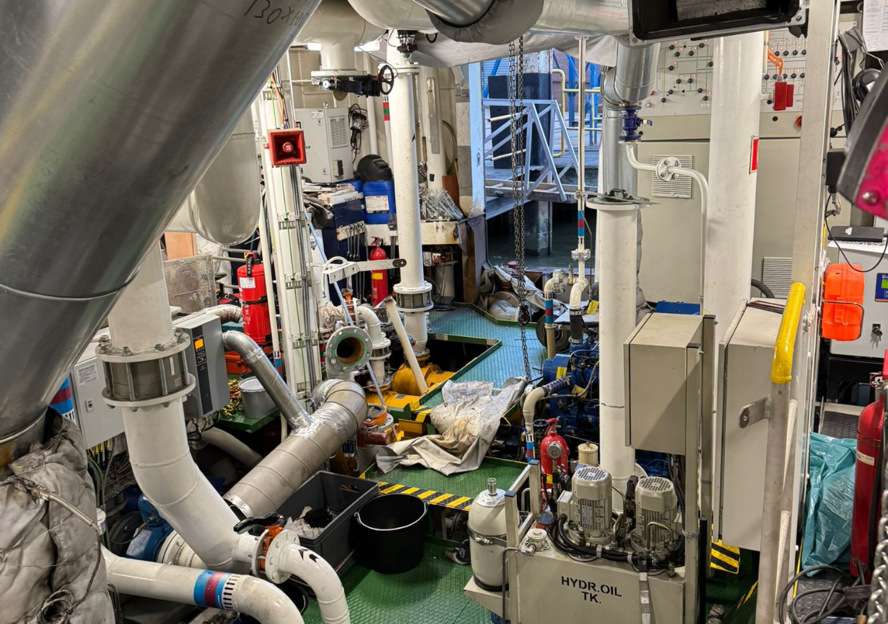 De keerkoppeling – een cruciaal onderdeel van de voortstuwing – werd zorgvuldig uitgebouwd, geïnspecteerd en vervangen door een gereviseerde unit. Tegelijkertijd werd de oude asgenerator verwijderd om plaats te maken voor een nieuw, efficiënter model dat het energiesysteem van het schip toekomstbestendig maakt.