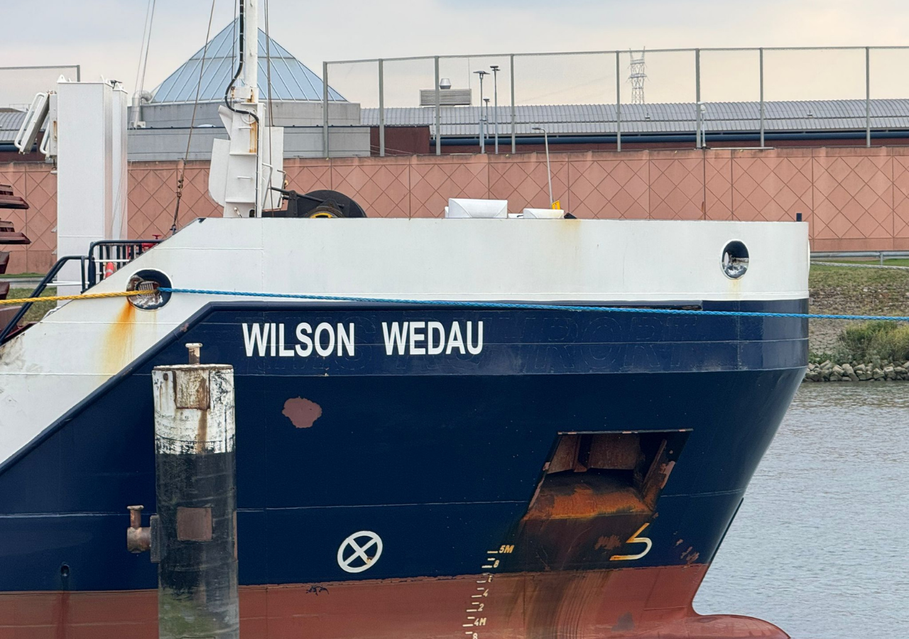 Afgelopen maandag meerde het vrachtschip Wilson Wedau af bij Olthof Marine Group voor een omvangrijke onderhoudsoperatie aan onze kade in Den Helder.